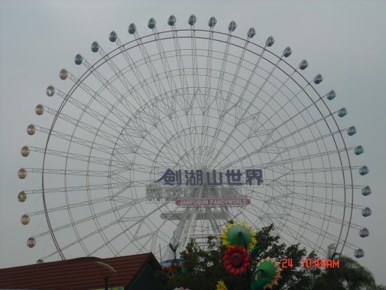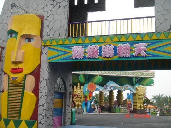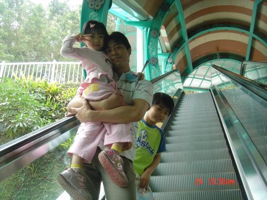劍湖山標的物 一家四口坐上去時 除了老蔡老神在在 我們其他三人越到上面尖叫連連 慢慢到平地時 老蔡竟然搖晃起來 嚇的我們又是尖叫連連 恨不得把他掐住